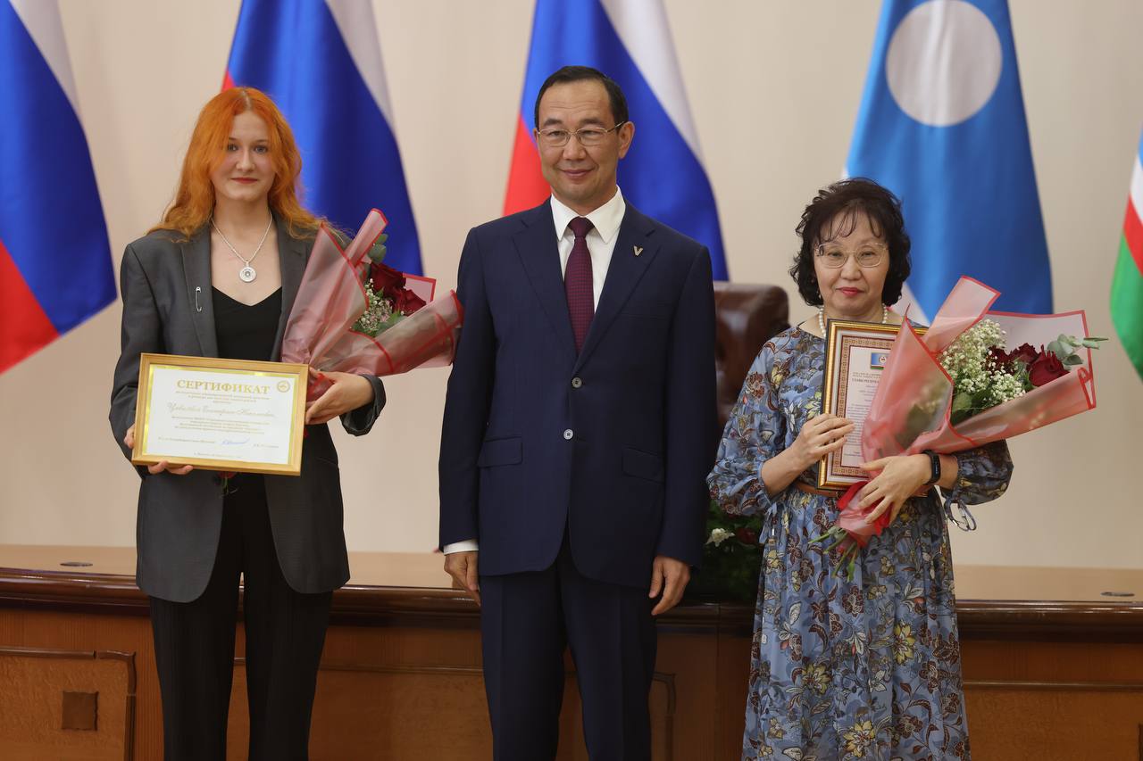 Глава Якутии наградил стобалльников ЕГЭ и их учителей.