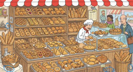 Аромат свежевыпеченного хлеба заполнил всю улицу, и дразнит всех прохожих. Но что у нас тут? Ваша задача — найти мышку. Подсказка: она, оказывается, тут не одна! Ниже приведем верный ответ.