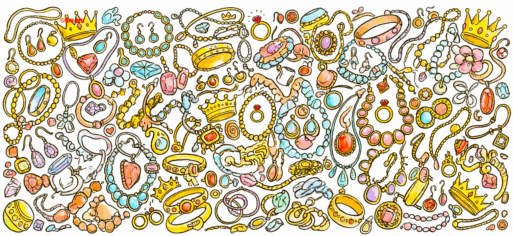 На картинке кто-то разбросал всё своё богатство — ювелирные украшения всех мастей! И колечки, и цепочки, и серёжки… Вам среди всего этого золота и рубинов нужно найти маа-а-аленькое сердечко! Справится ли ваш мозг с этой задачей? Даём на поиски 10 минут. Время пошло!