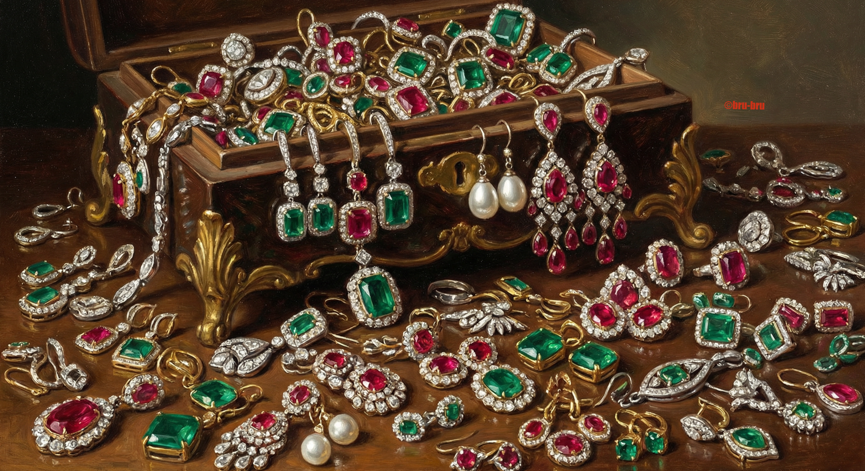 Перед нами шкатулка большой любительницы изумрудов и рубинов. Сможете найти серёжки без вставок из этих камней? Даем на поиски 10 секунд. Время пошло!