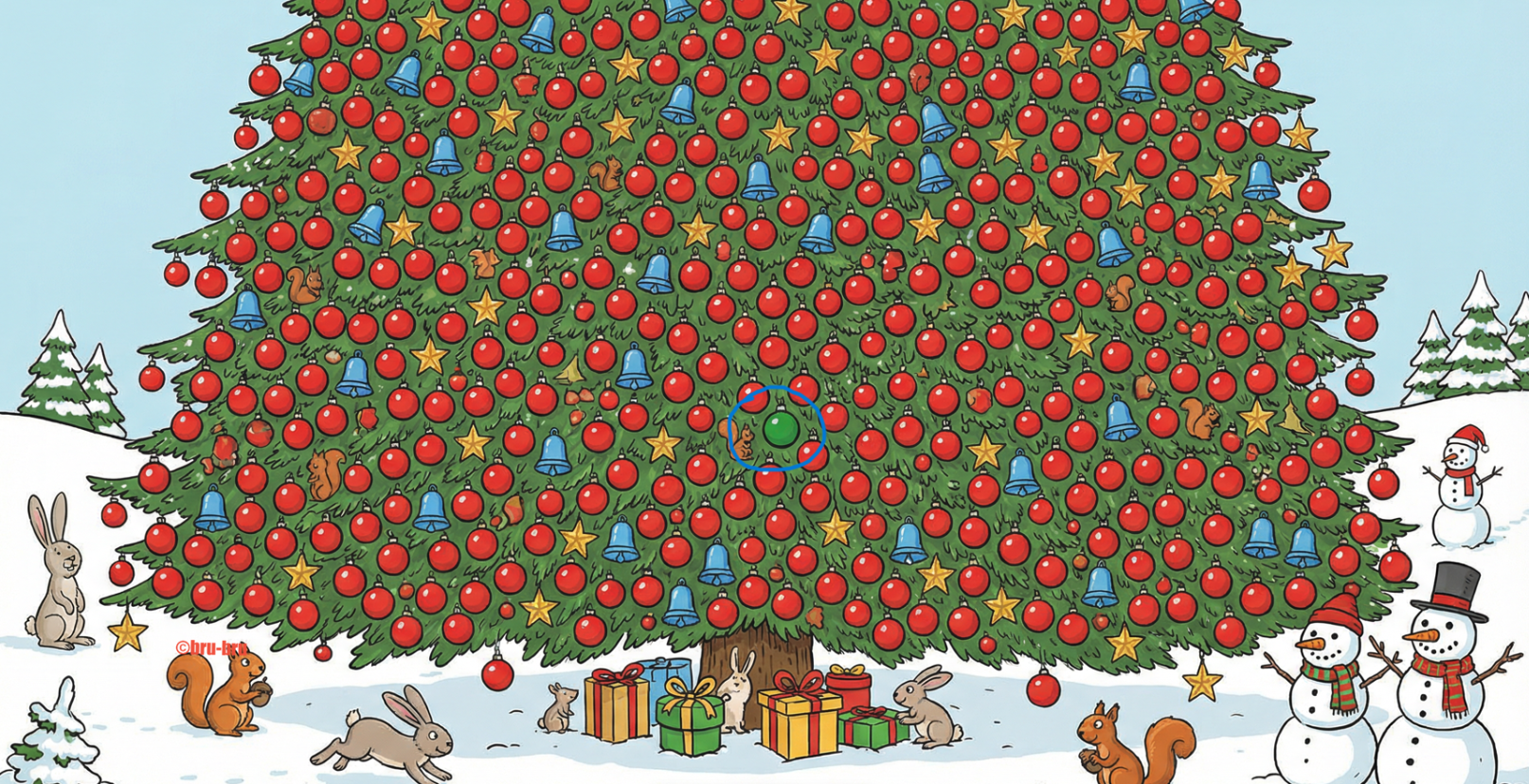Новый год всё ближе и ближе! В лесу кто-то украсил гигантскую зеленую красавицу. Ваша задача — найти зелёный шарик. На поиски даётся 10 секунд. Справитесь?