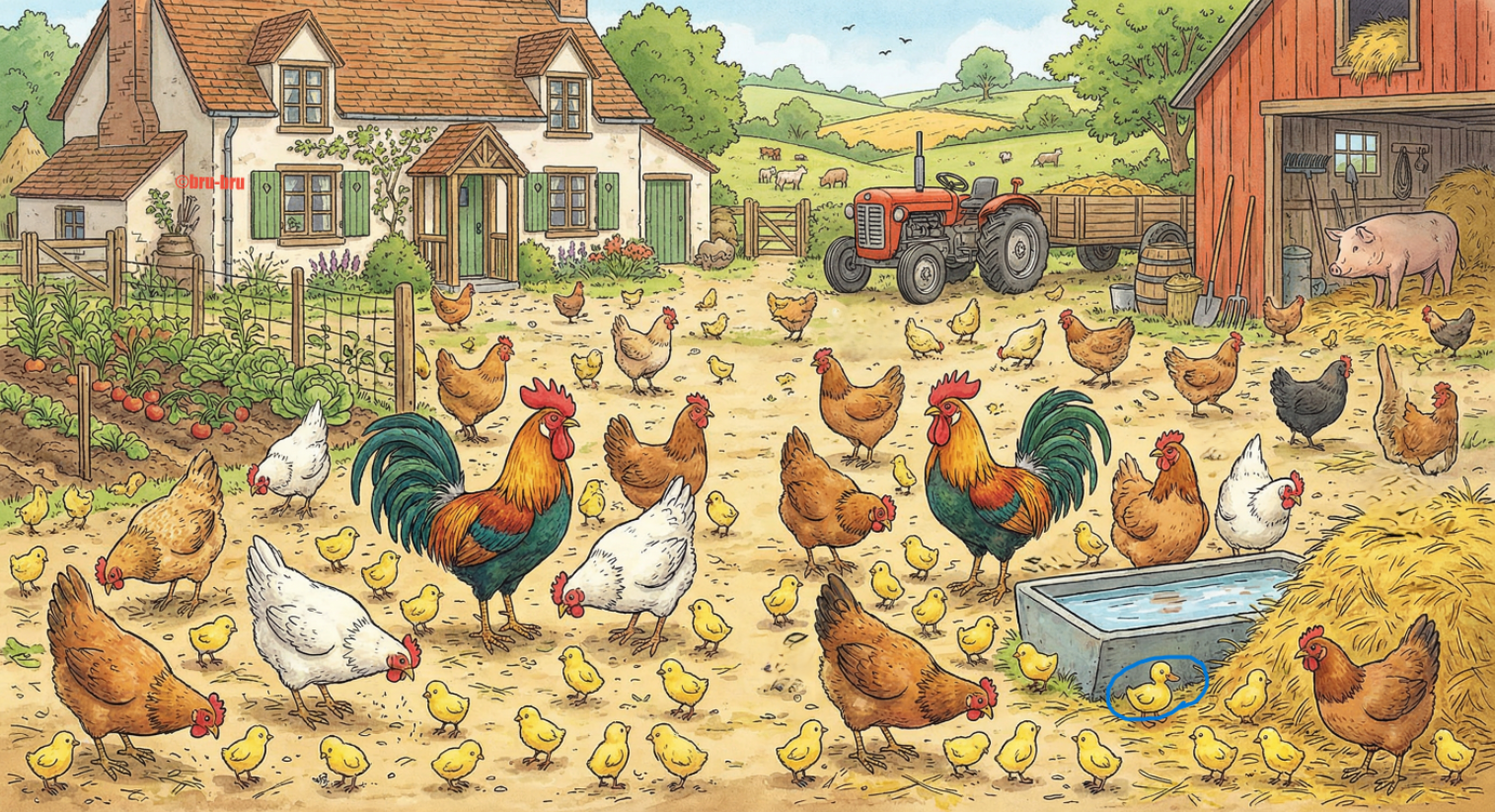 Ах, какая идиллия на дворе деревенского дома! Сразу видно, хозяйственник тут живет. Ваша задача — найти утёнка. Справитесь за 10 секунд? Время пошло!
