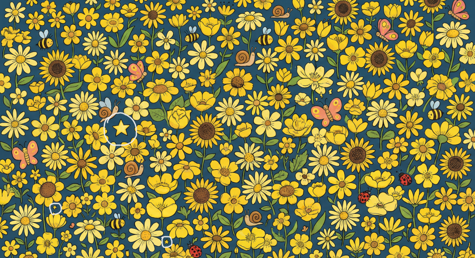 Среди всей этой желтой красоты кроются много мелких деталей. Ваша задача — найти все звёздочки на картинке! Справитесь за 10 секунд? Ниже приведем верный ответ.