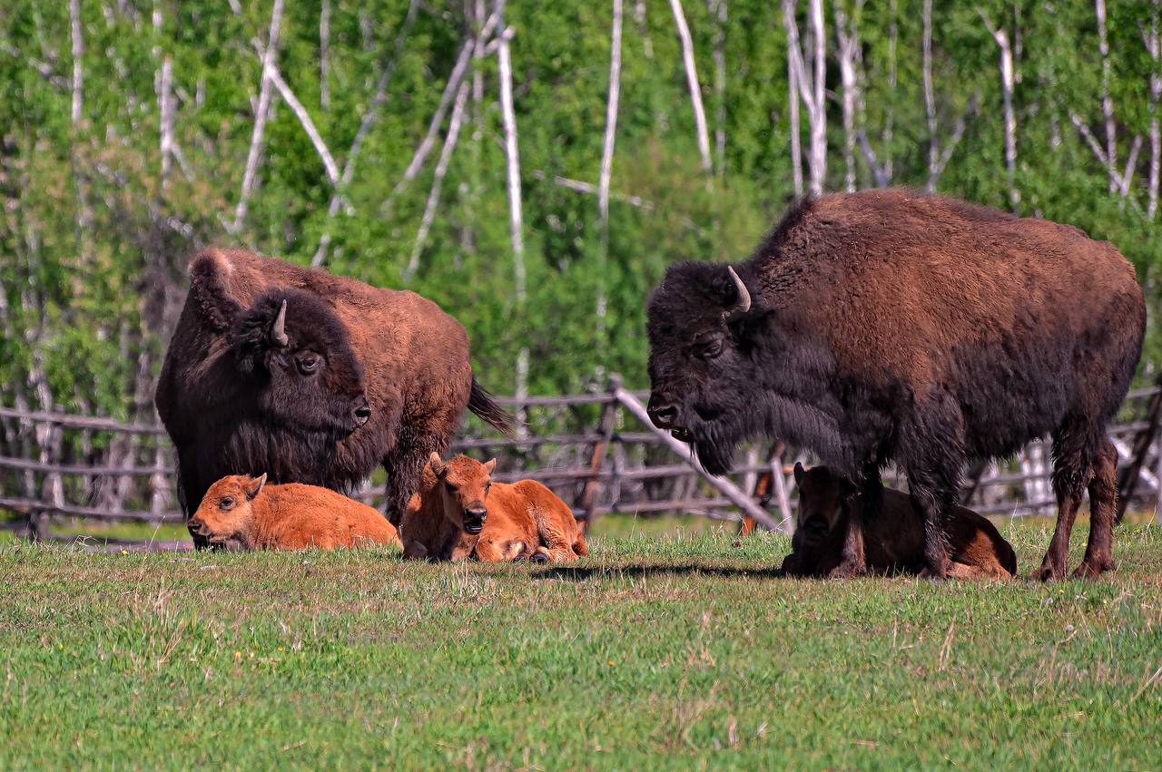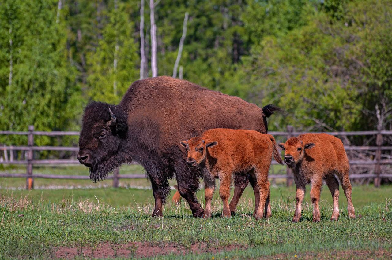 Бизонарий «Усть-Буотама» делится летними фотографиями юных бизончиков, которые впервые видят зелень после долгой зимы.