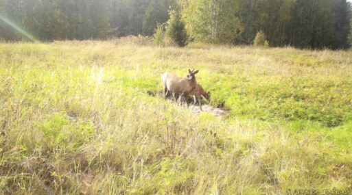 Фотоловушка национального парка «Ленские столбы» Якутии зафиксировала необычную пару – молодого самца изюбря и совсем еще маленького изюбренка.