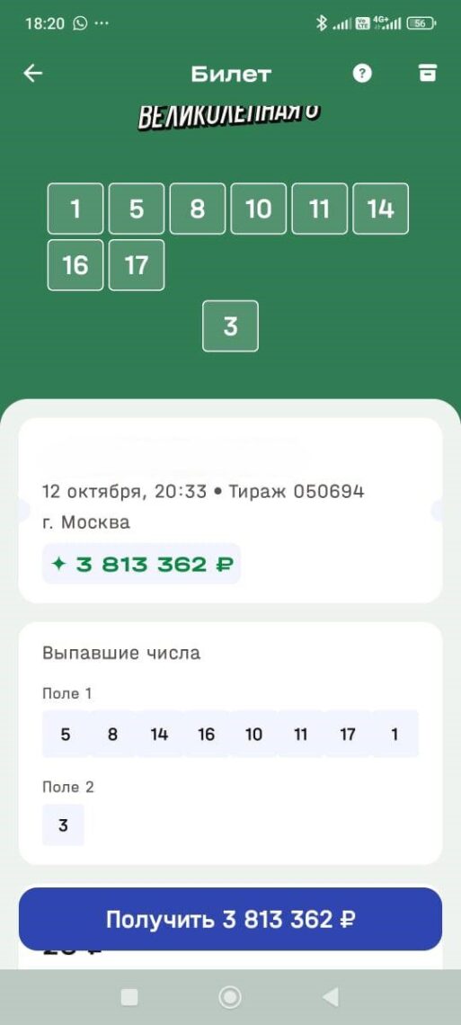 Нина участвует в лотереях уже три года, раньше её выигрыши не превышали 200 рублей. Обычно Нине помогает собственная стратегия: она не использует те числа, которые уже разыгрывались в прошлых тиражах. Благодаря такому подходу ей и удалось выиграть суперприз лотереи.