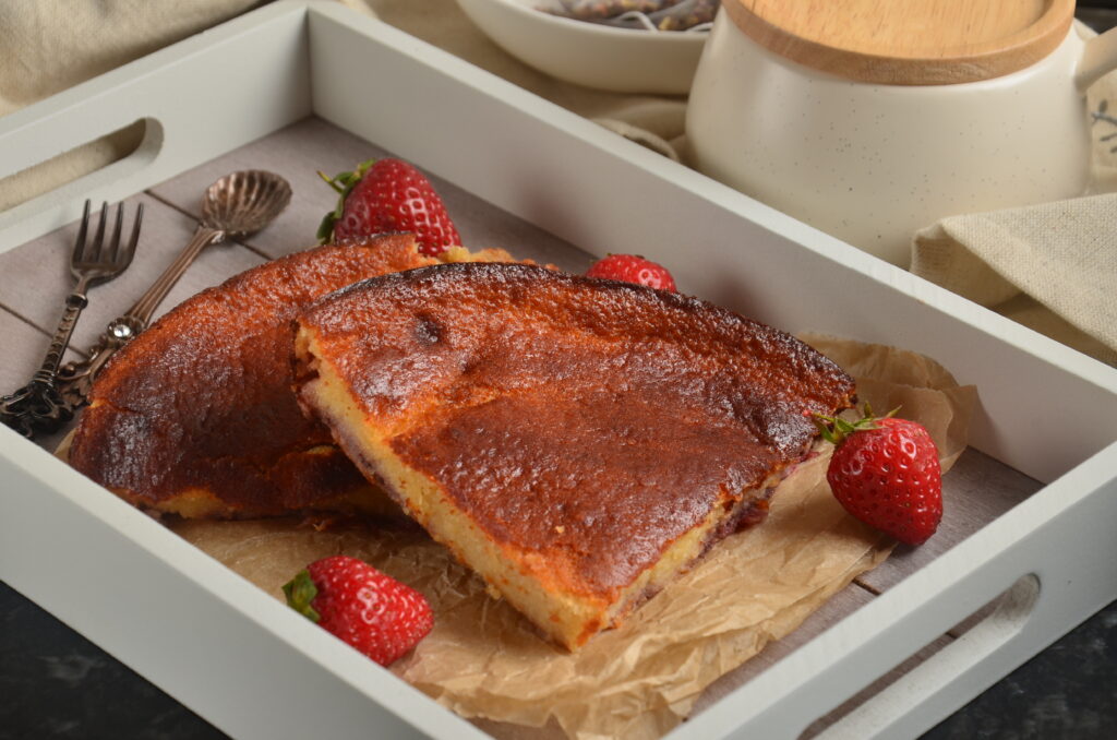 Почему бы не попробовать невероятный ягодный десерт? Особенно, если имеется своя ягодная полянка во дворе с клубничными кустами. Также можно использовать землянику — тогда десерт получится еще более ароматным. Так как в качестве основы пирога используется кисломолочный продукт, тесто получится достаточно влажным. Подавать пирог лучше полностью остывшим, когда он стабилизируется и примет окончательную форму.