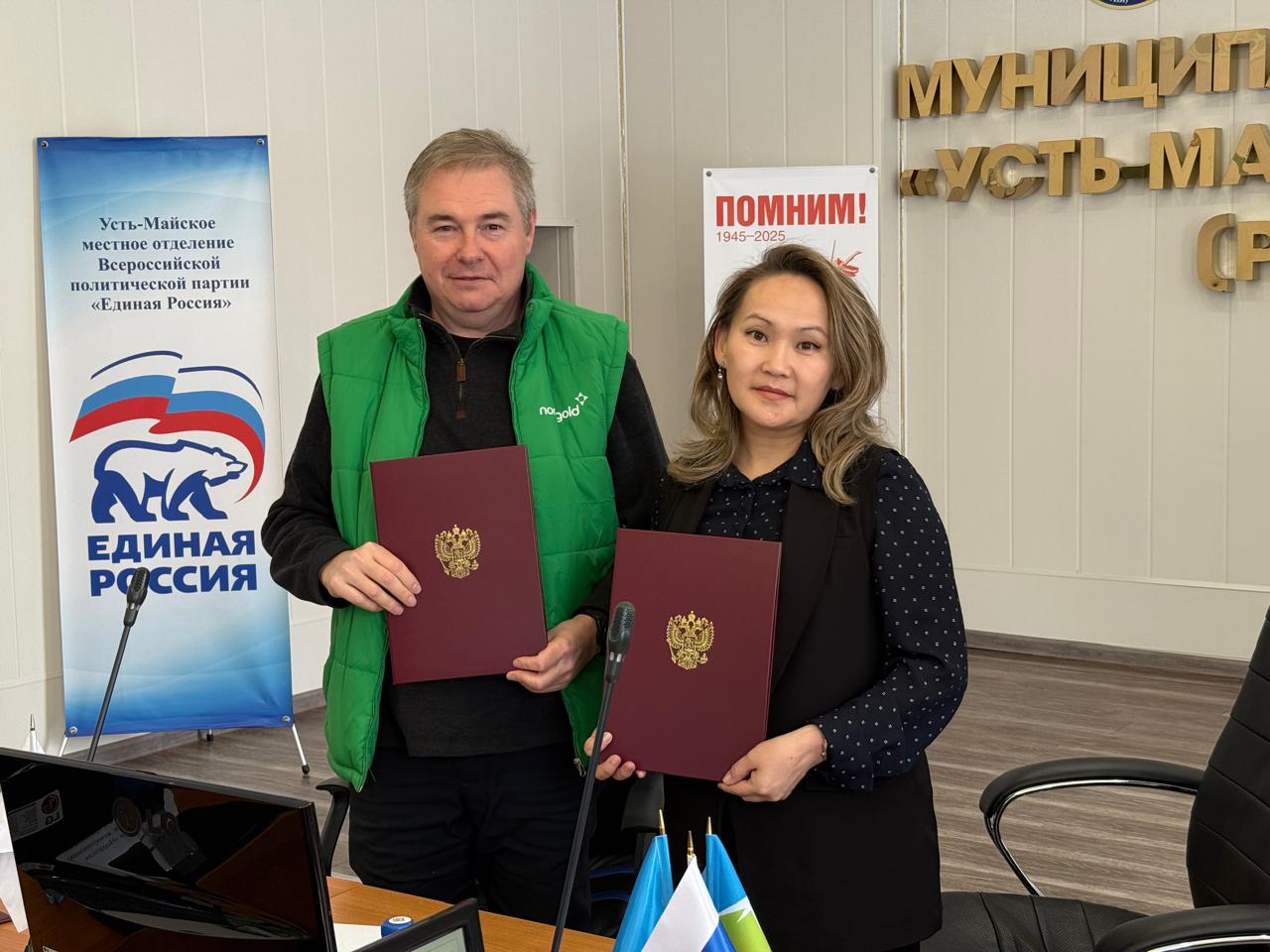 В рамках развития взаимовыгодного партнёрства между бизнесом и местными сообществами золотодобывающая компания «Нордголд» (входит в группу «Севергрупп») подписала Соглашения о социально-экономическом сотрудничестве с администрациями Усть-Майского района и Эжанского национального наслега Республики Саха (Якутия). От района Соглашение было подписано главой Александром Азаровым, от наслега подписала глава Анастасия Адамова, со стороны компании — Руководитель Управления Российских и Казахстанских проектов компании Нордголд Александр Бурмистров .