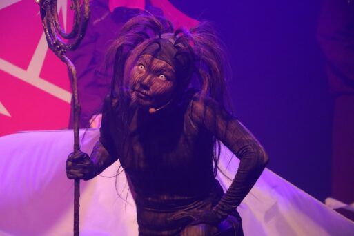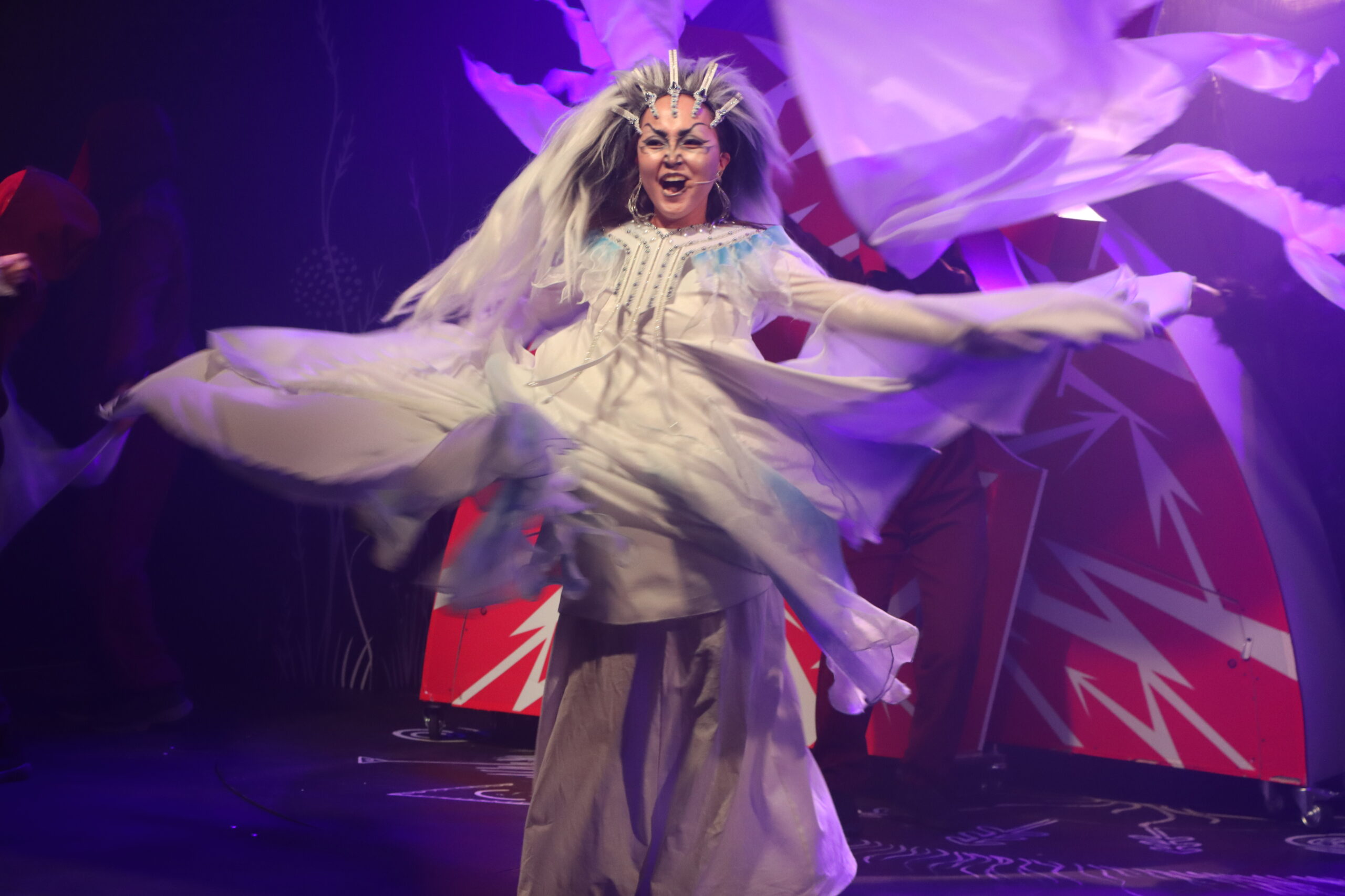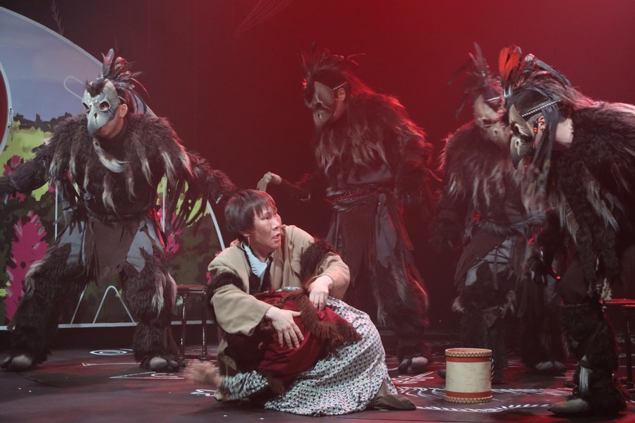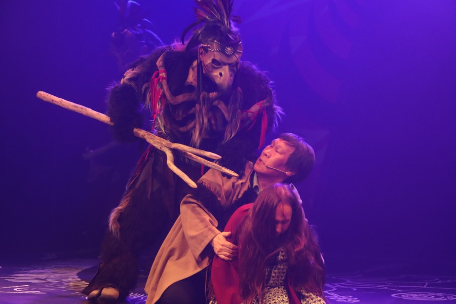 Меня впечатлило все: сама идея связать мотивы этно-сказки со стилем фьюжн мюзикла, превосходная игра буквально всего актерского состава, интересные декорации не только самой сцены, но и подмостков и наконец, сногсшибательные костюмы.
