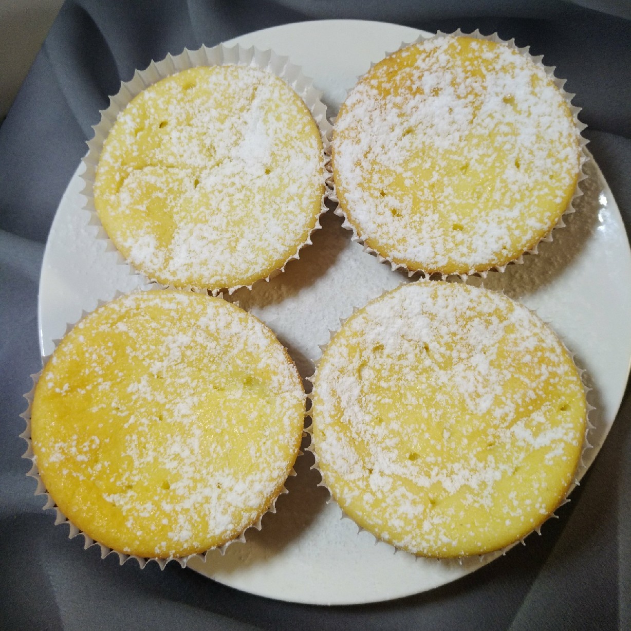 Как время выйдет, сырники вынуть из духовки, остудить. Сырники должны остыть полностью, тогда их легко будет вынуть из бумажных стаканчиков и формы. Вынуть, посыпать сахарной пудрой.