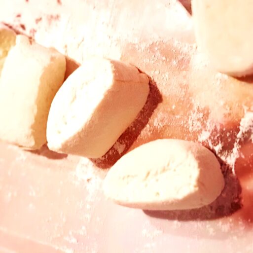 От массы нужно отщипнуть кусочек, обвалять его в муке, сформировать шарик и приплюснуть его, придав форму «блинчика». И так со всеми заготовками.