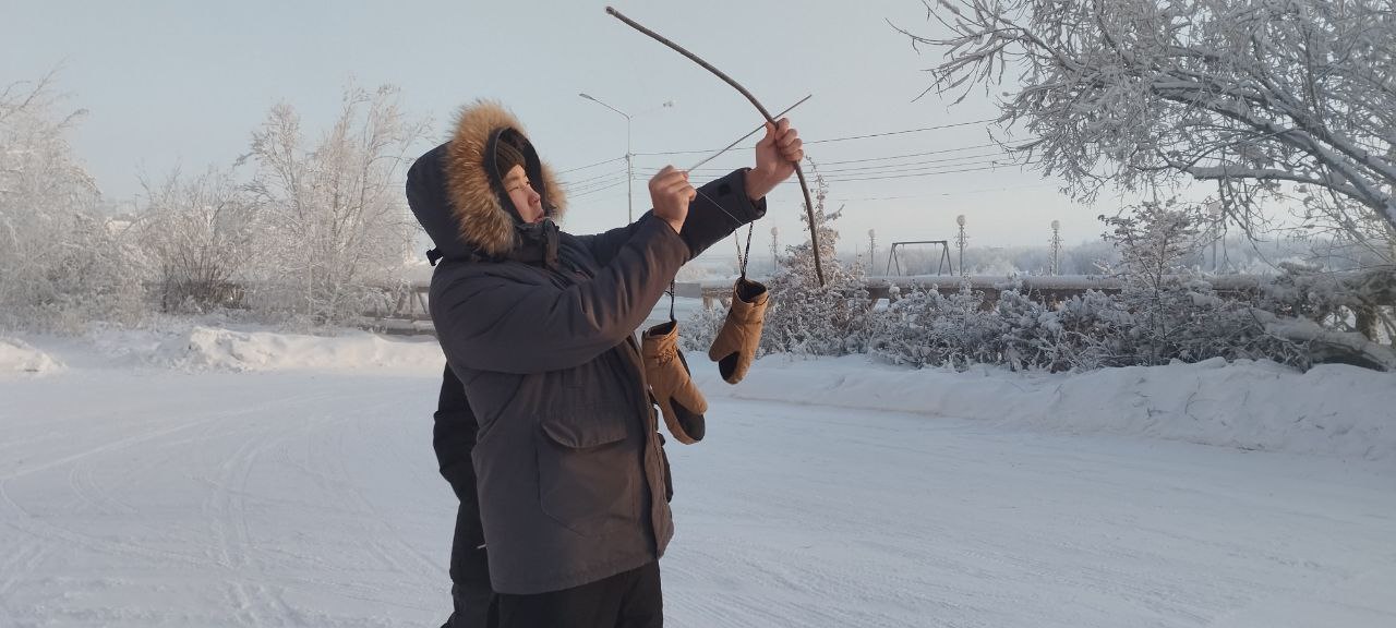 Несмотря на мороз, дети и взрослые участвовали в состязании по метанию чаута. Призы получили Сандаара Амыдаева из ансамбля «Гиркилэн» и Екатерина Афанасьевна Кривошапкина, председатель Союза эвенов РС (Я).