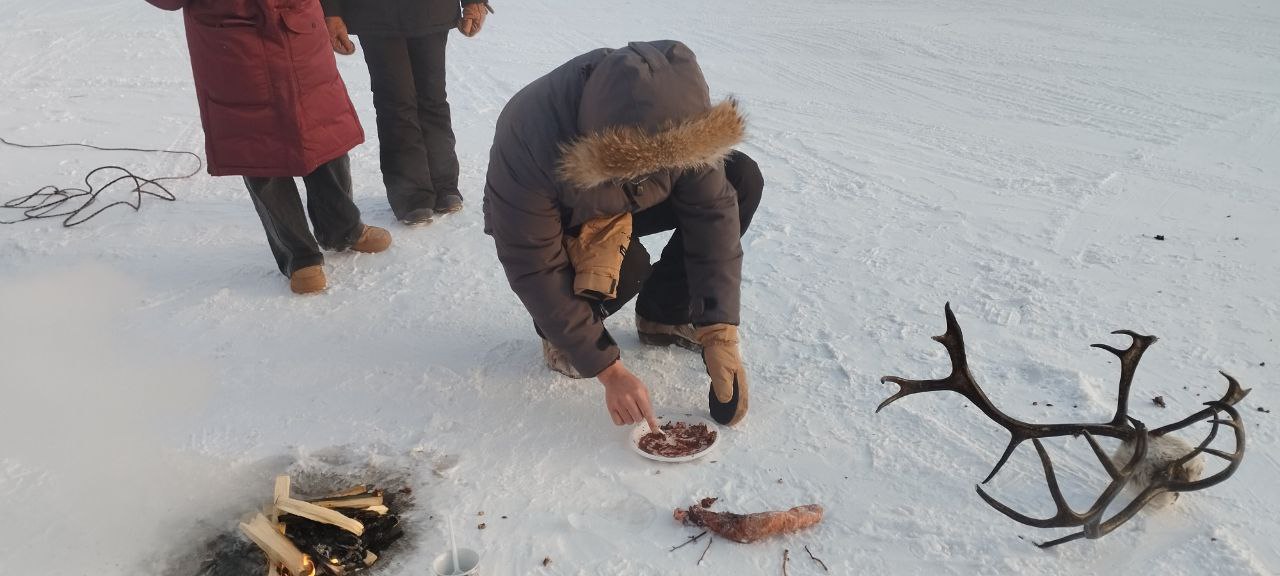 В кабинете Ассоциации КМНС РС (Я) организаторы угостили всех сладостями и национальными блюдами — мясом оленины и кровяным супом, которые приготовила Агния Николаевна.