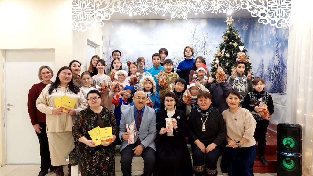 Председатель Общественной палаты РС(Я) Станислав Иванов, заместитель председателя Валентина Кириллина и полковник полиции в отставке, член Совета ветеранов Межмуниципального управления МВД России «Якутское» Лена Иванова вручили подарки и сертификат на 37 тысяч рублей для приобретения материалов для детского творчества. Подарки предоставил социальный партнёр АКБ «Алмазэргиэнбанк», на сертификат собрали средства сами члены Общественной палаты РС(Я).