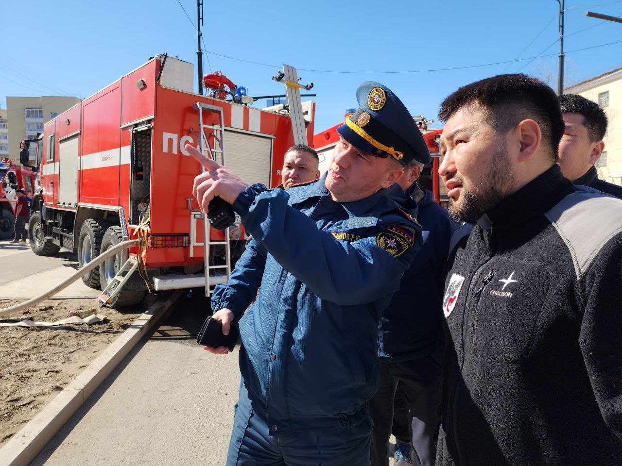 Евгений Григорьев провел на месте ЧП, пожара в доме по пр. Ленина, 25 оперативное совещание с участием руководителя СПСЧ ФПС по РС(Я) Романа Мыльникова, замглавы по городскому хозяйству Егора Кардашевского, начальника управления ГО и ЧС по г. Якутску Николая Егорова и других. Обсудили информации о предварительных причинах возгорания, нанесенном ущербе зданию.