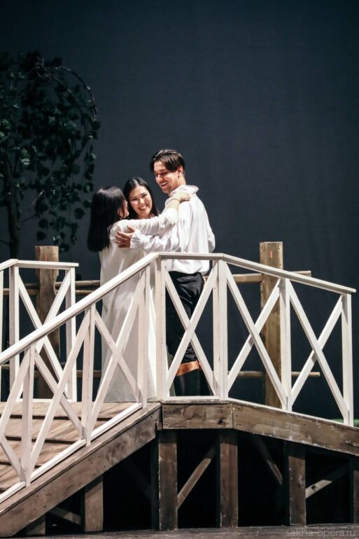 А передо мной стояла задача найти что-то такое, чтобы наш якутский зритель как бы вошел в этот спектакль, стал его частью. Поэтому появляется образ дерева. Оно же есть и в Михайловском. И мы смеялись, что нашли такую аналогию — заборы, какие есть и у нас, и в Михайловском.
