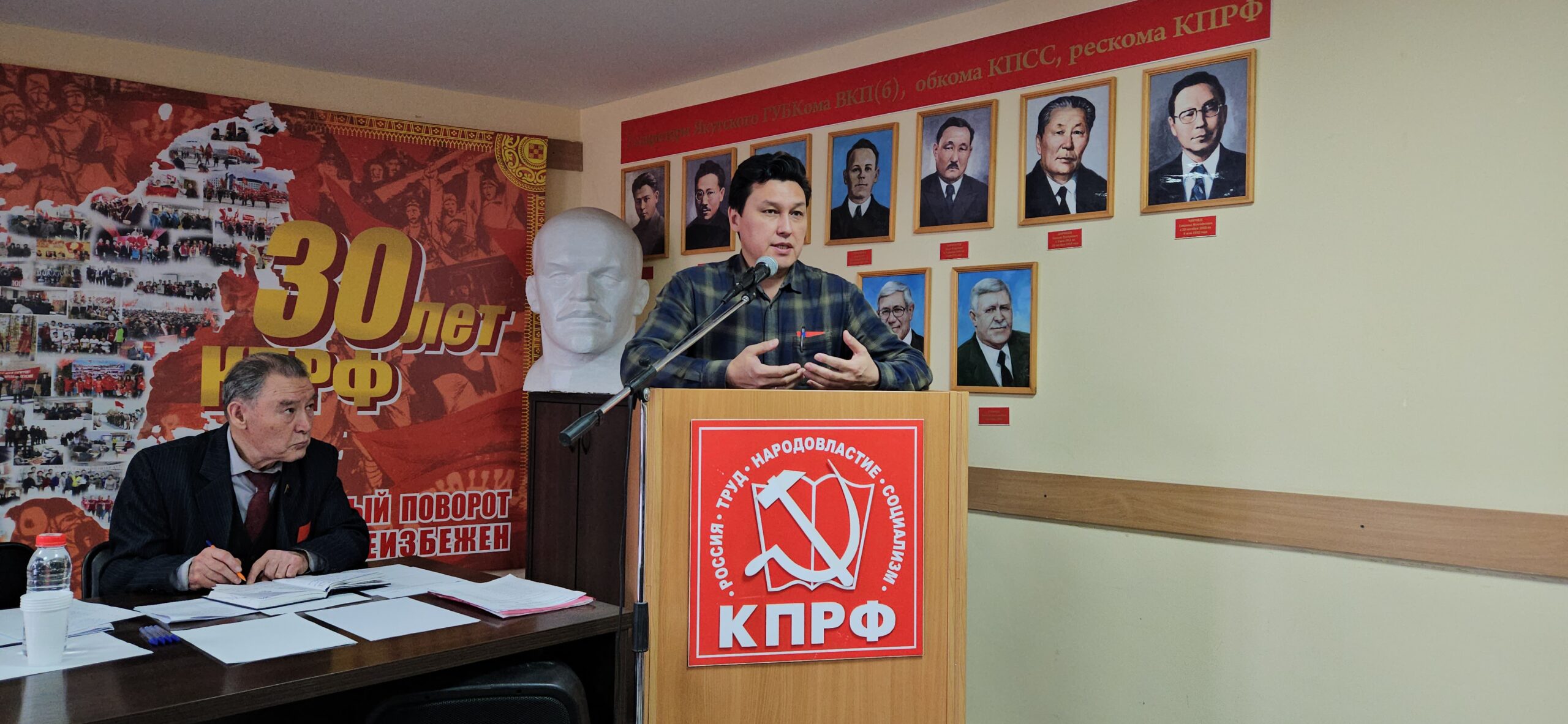 С докладом об итогах работы Якутского городского местного отделения КПРФ за 2022 — 2024 годы. выступил первый секретарь Якутского горкома КПРФ Айаан Васильев.