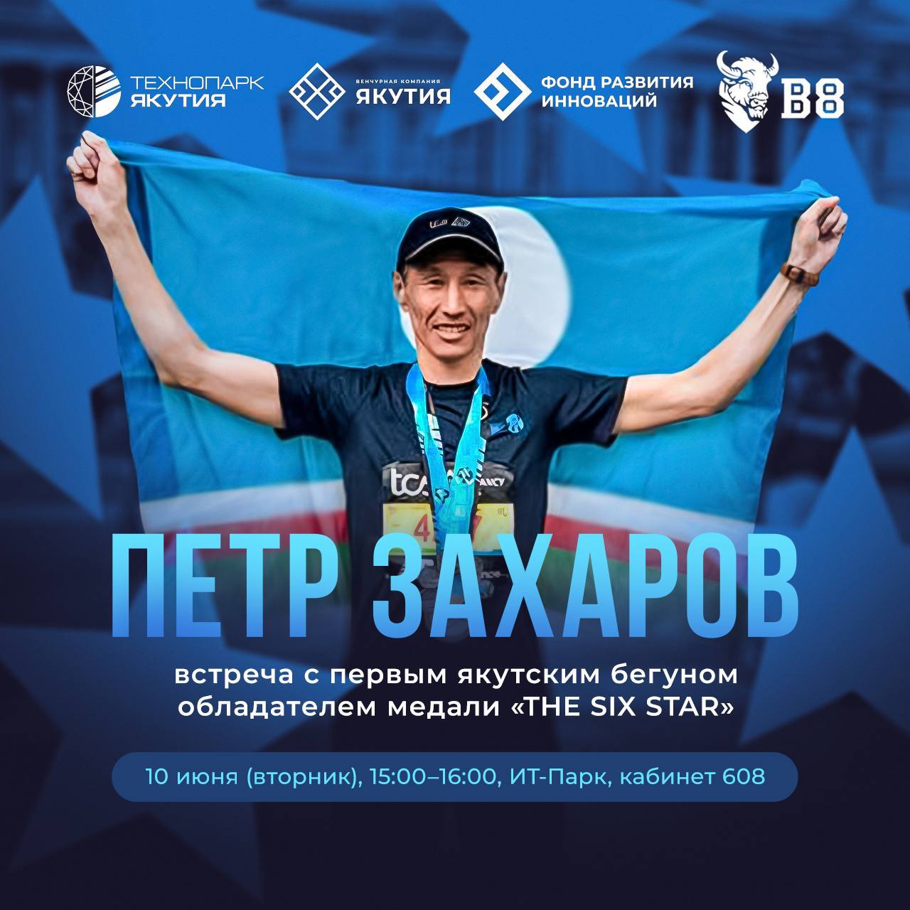 Сегодня, 10 июня, в ИТ-парке Якутска состоится встреча с первым якутским бегуном — обладателем медали The Six Star Петром Захаровым. Об этом сообщает Фонд развития инноваций Якутии.