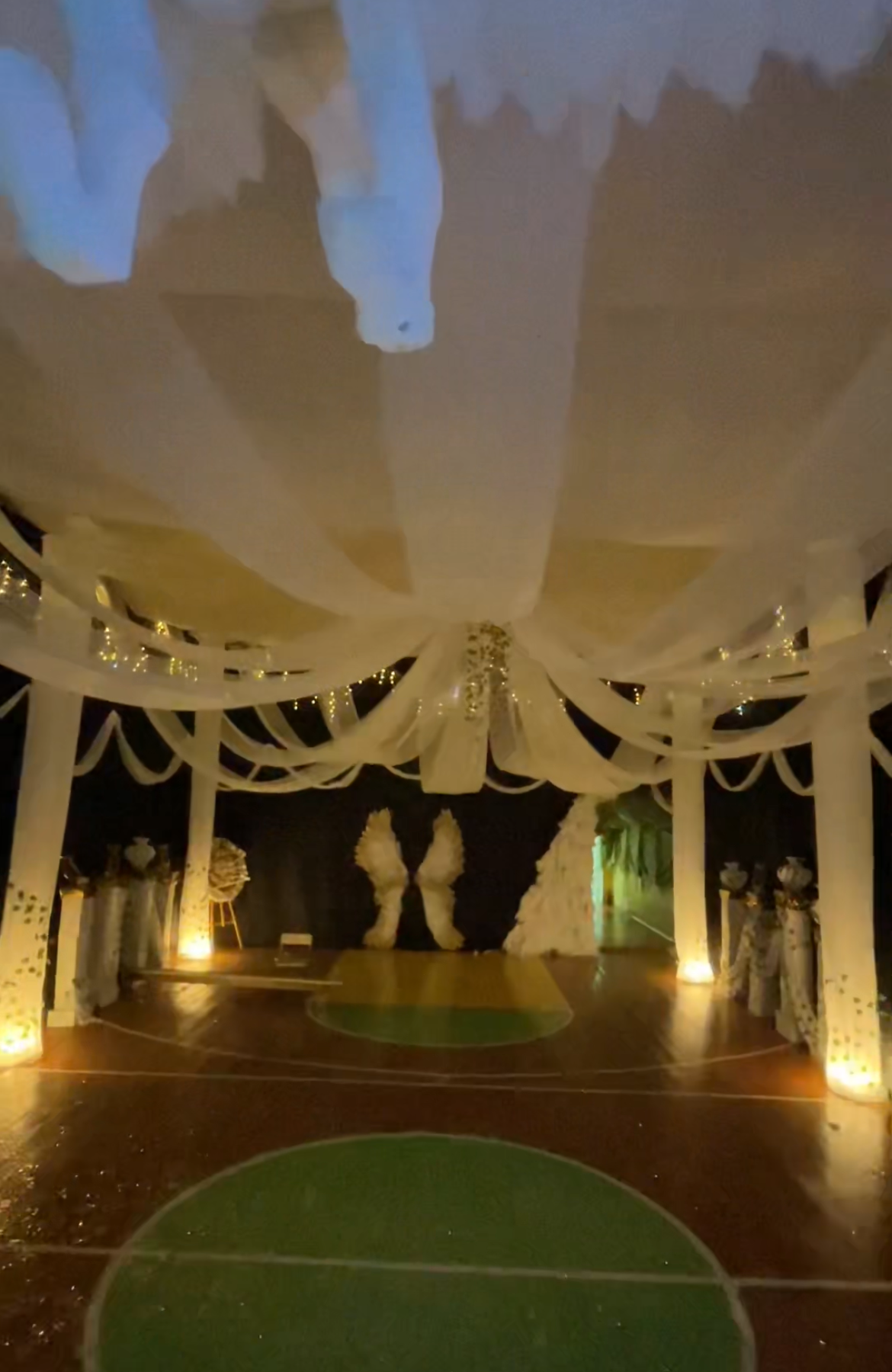 Оформление зала было поистине божественным. Пяти метровые колонны, из легкой ткани, взмывали к небесам. Потолок украшал величественный купол из 100 метров ткани, создавая иллюзию открытого неба Эллады. Мягкий свет гирлянд переплетался с искусными лианами, а в уютном уголке расположился тир для стрельбы из лука, где каждый мог почувствовать себя Аполлоном или Артемидой.