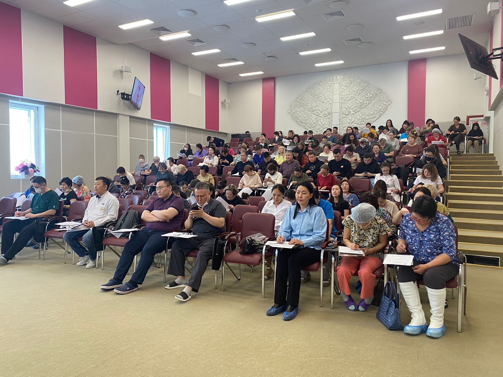 127 человек в актовом зале Перинатального центра больницы напоминают сегодня школьный класс или студенческую аудиторию.