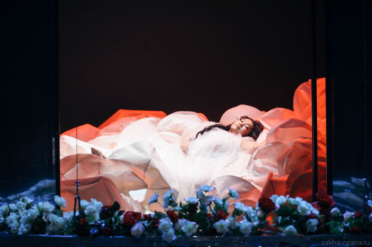 Отметим, кстати, сценографию заслуженного деятеля искусств РС(Я) Саргыланы Ивановой, главного художника театра, а заодно скажем о прекрасных костюмах заслуженного деятеля искусств, номинанта «Золотой маски» Сарданы Федотовой, — все вкупе сыграло на успех балета.