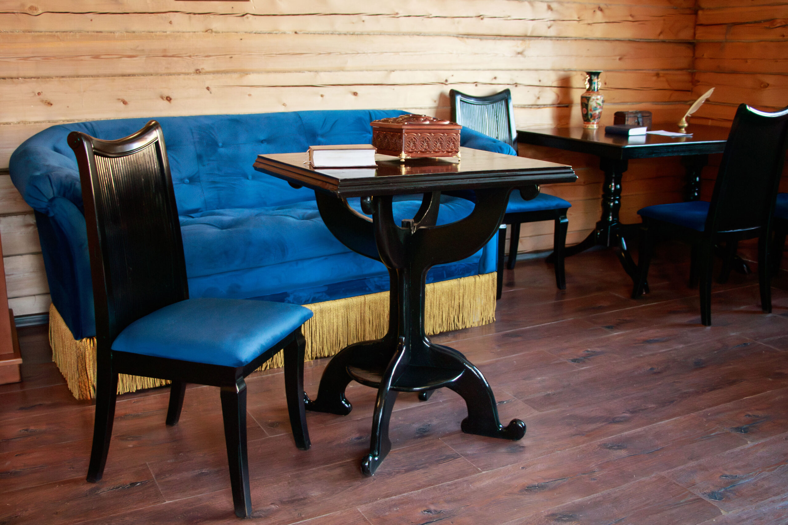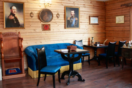 Осужденными отреставрированы стулья, столы, диваны, вешалка настенная и зеркало. Все оригинальные конструктивные элементы сохранены и аккуратно покрыты лаком, восстановлена обивка.