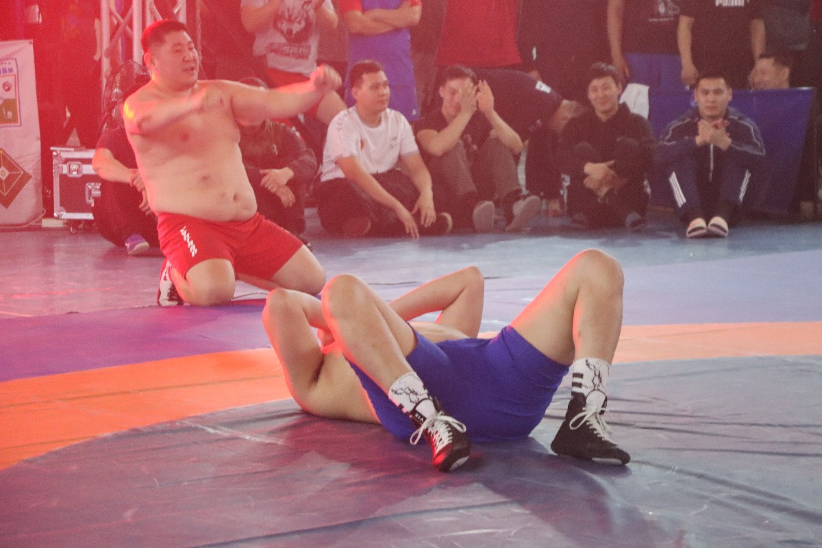 У тяжеловесов в финал вышли верхневилюйский хапсагаист Харысхан Баппагай и Эдуард Максимов из столичной команды. Здесь в спорном поединке, исход которого долго и скрупулезно решали с просмотром различных видеозаписей, судейский вердикт был вынесен в пользу Максимова.