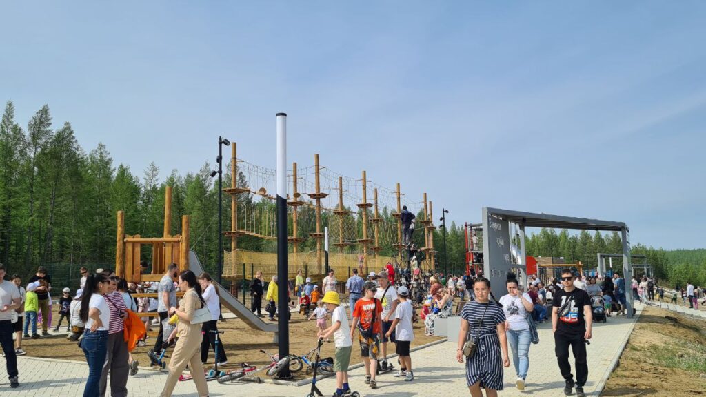 1 июня, в ходе праздничных мероприятий ко Дню защиты детей в Мирном, в микрорайоне Заречный состоялось торжественное открытие пространства «Ирелях». На территории новой зоны отдыха обустроены детские игровые элементы, верёвочный парк, спортивные площадки, фудкорт, беседки и лавочки.