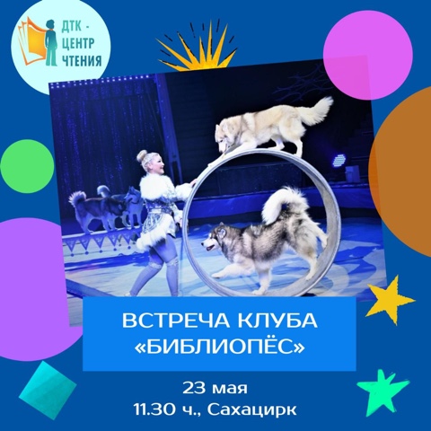 Начало выездной встречи клуба «Библиопес» – в 11:30 ч. в Сахацирке, адрес: ул. Пояркова, 22. Сбор на 1 этаже в 11:15ч. Вход бесплатный – только по предварительной записи по телефону: 89142877677 (Наталья Семеновна).