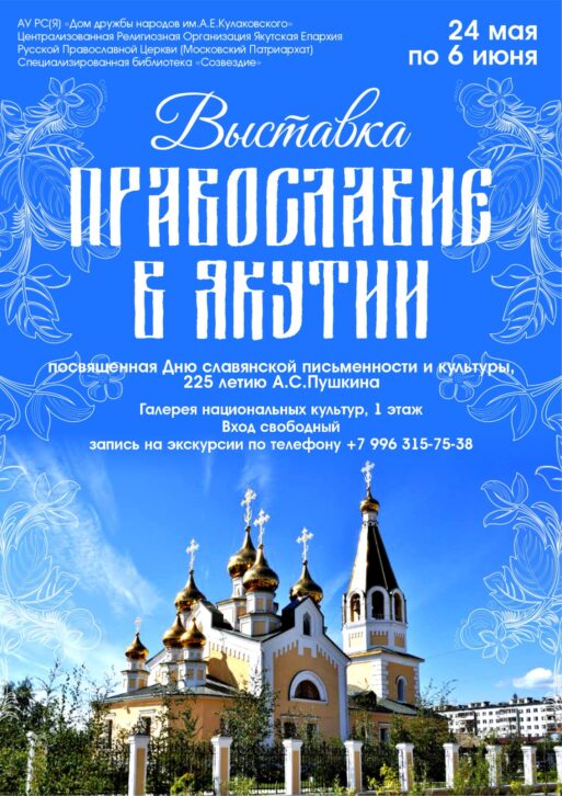24 мая в 18.00 приглашаем на открытие выставки «Православие в Якутии» в рамках Декады русского языка, посвященной Дню славянской письменности и культуры, 225-летию А.С. Пушкина.