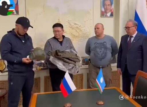 Представители опорного пункта Якутии в ДНР и военкор «Сахамедиа» Владимир Укоев доставили с передовой в Москву и передали главе Сунтарского улуса Анатолию Григорьеву пробитый осколками шлем и бронежилет Героя России Дмитрия Егорова (позывной Сунтаар).