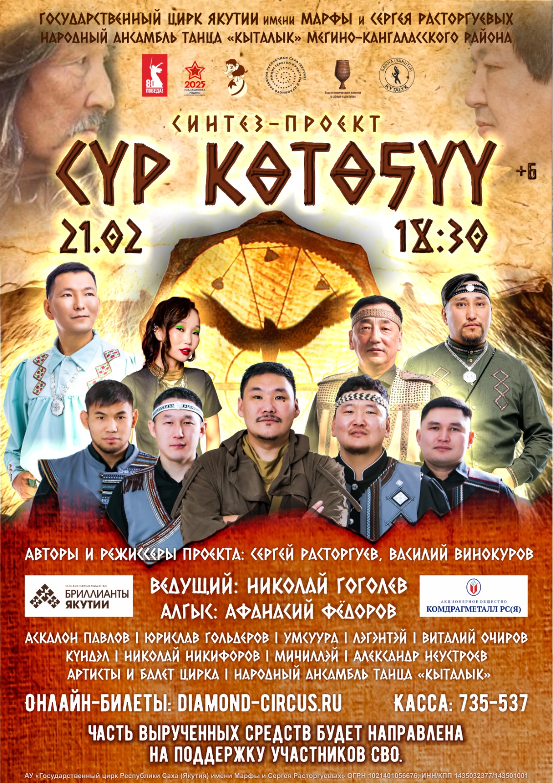 Олунньу 21 күнүгэр киэһээ 18.30 чаастан Марфа уонна Сергей Расторгуевтар ааттарынан Саха Судаарыстыбыннай цирката уонна «Кыталык» оҕо-ыччат эстетическэй киинэ Аҕа Дойду көмүскээччилэрин күнүгэр анаан «Сүр көтөҕүү» эстрада уонна цирка артыыстара кыттыылаах синтез бырайыакка ыҥырар.