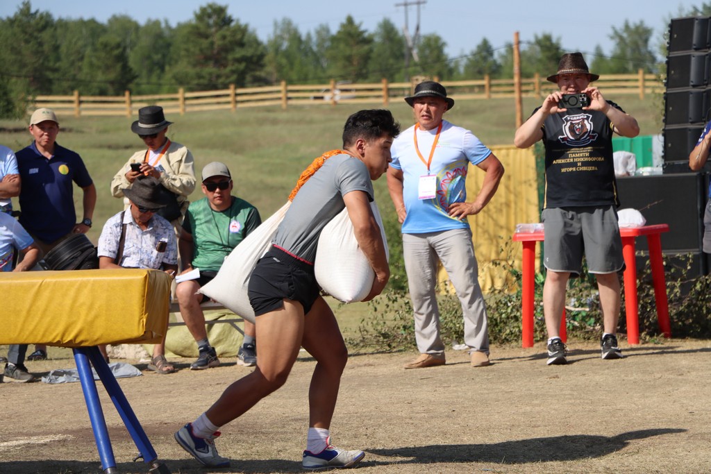 Традиционный вид якутского многоборья. В разных турнирах он отличается только весом камня. Здесь боотурам предложили пронести валун весом в 130 кг, к тому же с острыми гранями, что затрудняло силачам их задачу. На глазах тысяч своих земляков своим выдающимся достижением порадовал 22-летний Гарри Сдвижков, младший брат известного мас-рестлера и начинающего многоборца Бориса Сдвижкова.