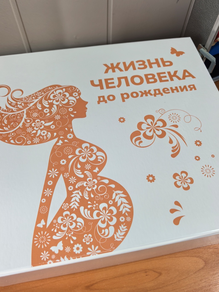 Мы идем в музей поликлиники, чтобы взглянуть на подарок. Анна Константиновна открывает красивую коробку с надписью «Жизнь ребенка до рождения», достает силиконовые фигурки (рост самой маленькой меньше сантиметра, этому малютке всего 7 недель, а вес самого большого муляжа в наборе, ему 26 недель развития, уже ощущаешь, взяв в руки, он весит около килограмма).