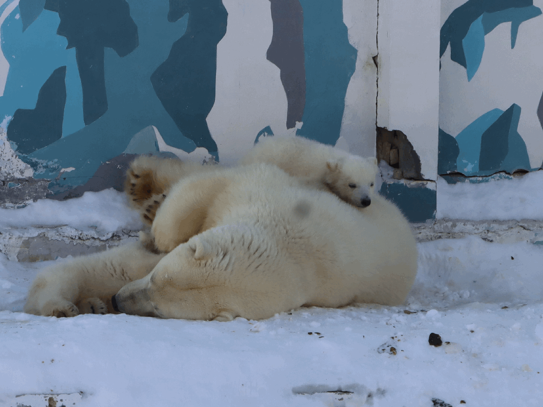 — (Оксана Петровна смеется) Вы задали очень интересный вопрос. Дело в том, что белые медведи – существа одиночки. Самец с самкой бывает вместе только во время брачного сезона и спаривания – в мае-июне. После этого самец уходит, и не принимает участия в выращивании потомства. Если он в это время встретит на воле своих детенышей, даже может их съесть.