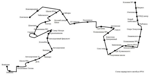 Схема движения автобусов 1 и 16, которые изменены в связи с приостановлением маршрута 8.