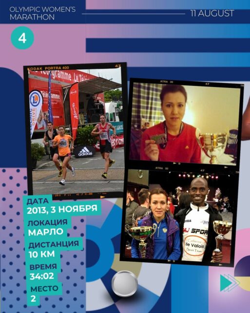 А в ноябре того же года наша спортсменка стала второй, пробежав в Марло 10 км (34 минуты 2 секунды).