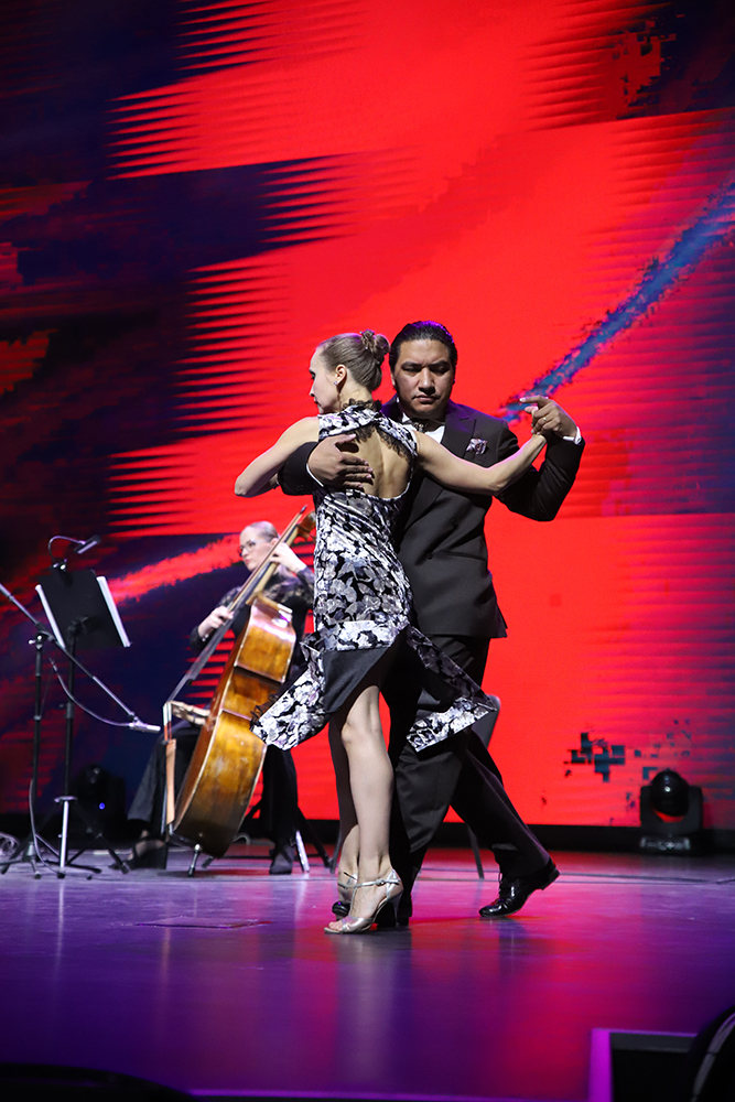 Концерт был выстроен на контрасте двух ключевых направлений жанра: традиционного, пропитанного духом аргентинских улиц, и новаторского, чей расцвет связан с именем гения Астора Пьяццоллы. Украшением вечера стало выступление танго-пары — сертифицированного преподавателя международного уровня Татьяны Герасимовой и чемпиона мира по танго Эсекьеля Гомеса, чьи страстные и отточенные движения стали визуальным воплощением музыки.