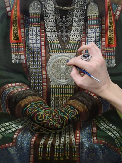 Мало того, что они стырили без разрешения мои работы, так они ещё соединили две разные по концепции работы в одну. Из образа “Тыгын Дархан” отредактировали, убрали окровавленный батас (оружие, однолезвинная пальма) и сделали “жениха”. Это насколько нужно быть наглым и самоуверенным, чтобы взять без спроса, ещё и интерпретировать иначе. Жирный минус организаторам, дизайнерами и министерству, которое это утвердило, это показатель уровня незнания закона, а также самой сути авторства и интеллектуальной собственности”.