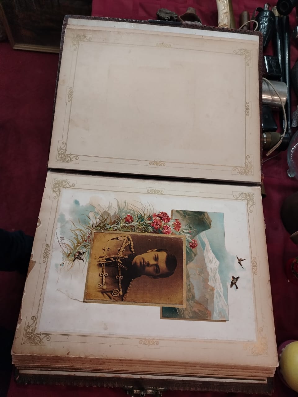 Но вернемся немного назад по исторической ленте. Здесь нас ждут уникальные экспонаты, относящиеся к фигуре последнего императора Российской империи. Я держу в руках коронационный стакан Николая II, из-за таких в 1896 году в Москве на Ходынском поле разыгралась трагедия. Здесь же семейный фотоальбом государя. Все снимки сделаны известным фотографом Левицким. Только он имел право фотографировать членов царской семьи.