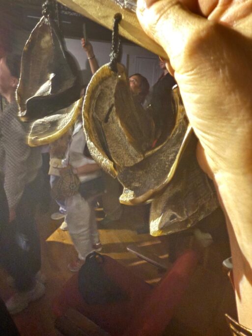 А в финальных аккордах концерта произошло вообще невообразимое. Клавдия и Герман призвали всех своих зрителей присоединиться к ним и на сцене или со зрительного зала стать участниками концертного номера и сыграть с ними на народных инструментах. А этих народных инструментов на сцене было вдоволь. Мне тоже достался инструмент под названием «хаҥалда». Это было нечто волшебное — почувствовать себя в общности с этим великим таинством! Концерт закончился прекрасным осуохаем, который объединил опять-таки всех зрителей в круговом танце.
