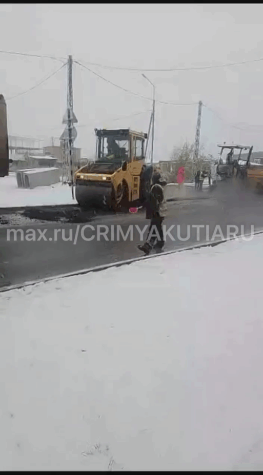 Классика жанра: в Якутске пошел снег, значит пора ложить асфальт.