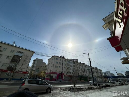 Кольцо вокруг Солнца появилось в небе над Якутском. Оптическое явление называется гало и образуется из-за преломления света в кристалликах льда, сообщает тгк ЯСИА