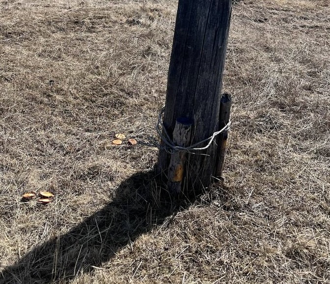 На фото видно, что сэргэ – коновязь в родном алаасе Ойунского накренилась. У ее основания поставили некую подпорку, к которой привязали сэргэ металлической проволокой. Смотрится очень некрасиво.