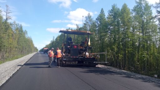 ДЭП №135 ведет ремонт ФАД «Колыма» на участке км 417 – 430. Делают дорожное основание, удлиняют и укрепляют пять водопропускных труб диаметром 1,5 метра, наносят разметку и устанавливают дорожные знаки.