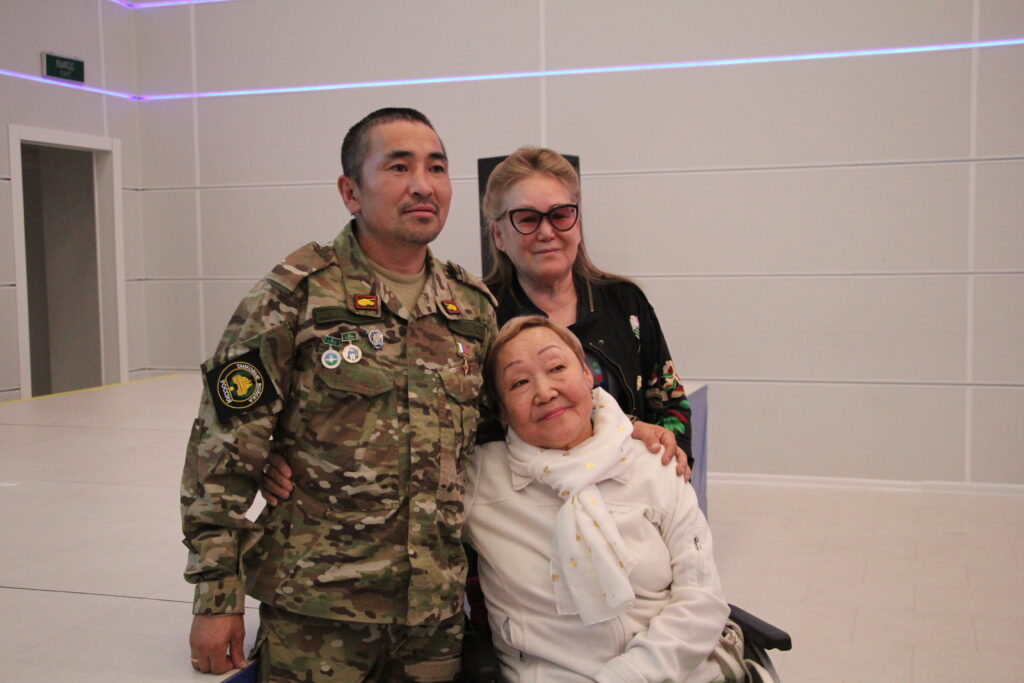Уоттаах сэрииттэн кэлбит Дьоруойбутун эҕэрдэлии, бэйэлэрин оҥоһуктарын бэлэх уунаары, “Саха сирин бойобуой шелкопрядтара” диэн аҕам саастаах волонтердар бөлөхтөрө кэлбит. Салайааччылара кинилэр АБДь саҕаланыаҕыттан үлэлииллэрин, биһиги байыастарбытыгар анаан маскировочнай сиэккэни баайалларын, онон бүрүммүт саллааты тепловизор кыайан көрбөтүн, оннооҕор бойобуой тиэхиньикэни итинник сиэккэнэн сабан көмүскүүллэрин кэпсээтилэр. Сиэккэлэрин оҥороллоругар үп көрүллүбэтин, матырыйаалы бэйэлэрин биэнсийэлэринэн атыылаһалларын, кэнники кэмҥэ элбэх сакаас киирэрин, ону толорорго үлэһит илии тиийбэтин кэпсээтилэр. Сенатор А.Акимов бу үтүө саҕалааһыҥҥа көмөлөһүөх буолан тылын биэрдэ.