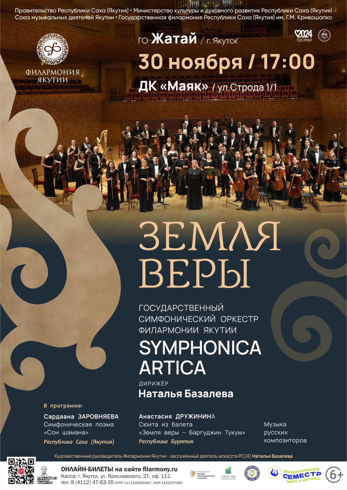 Государственный симфонический оркестр Symphonica ARTica Филармонии Якутии под управлением заслуженного деятеля искусств Республики Саха (Якутия) Натальи Базалевой представит концерт «Земля веры».