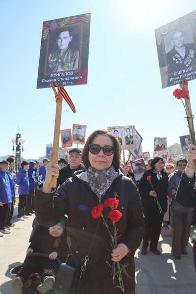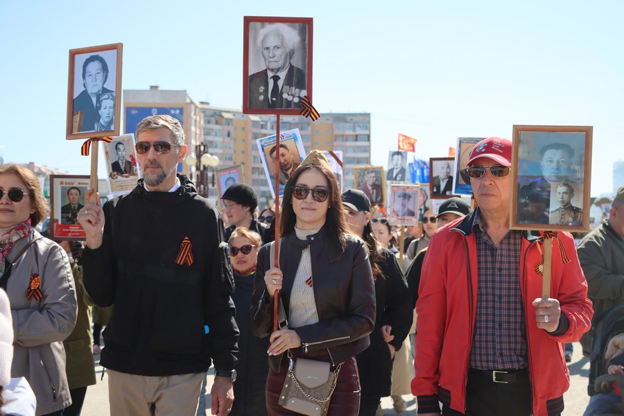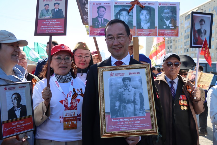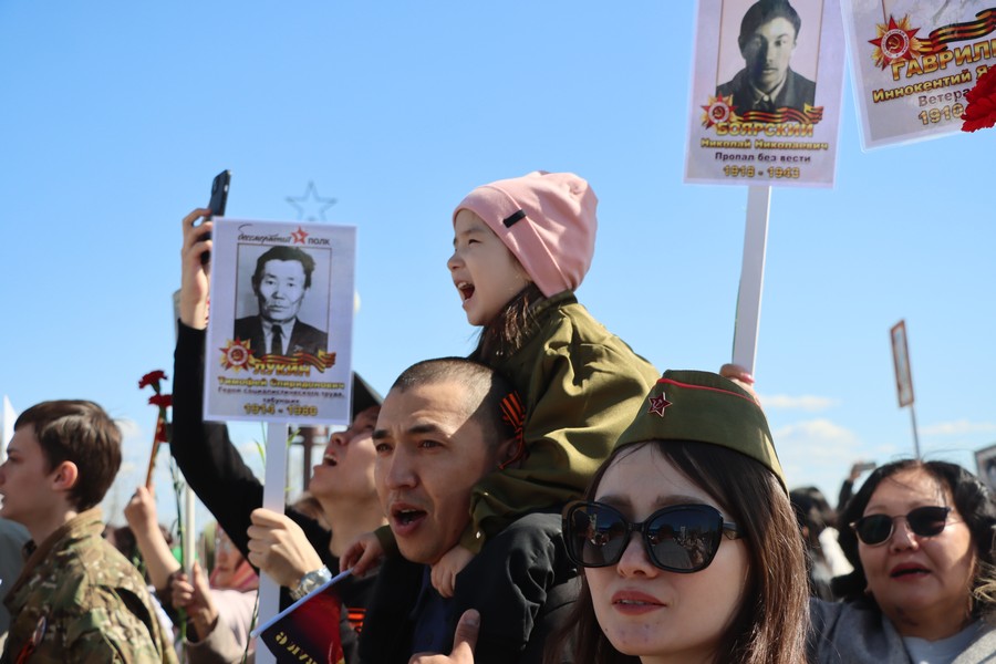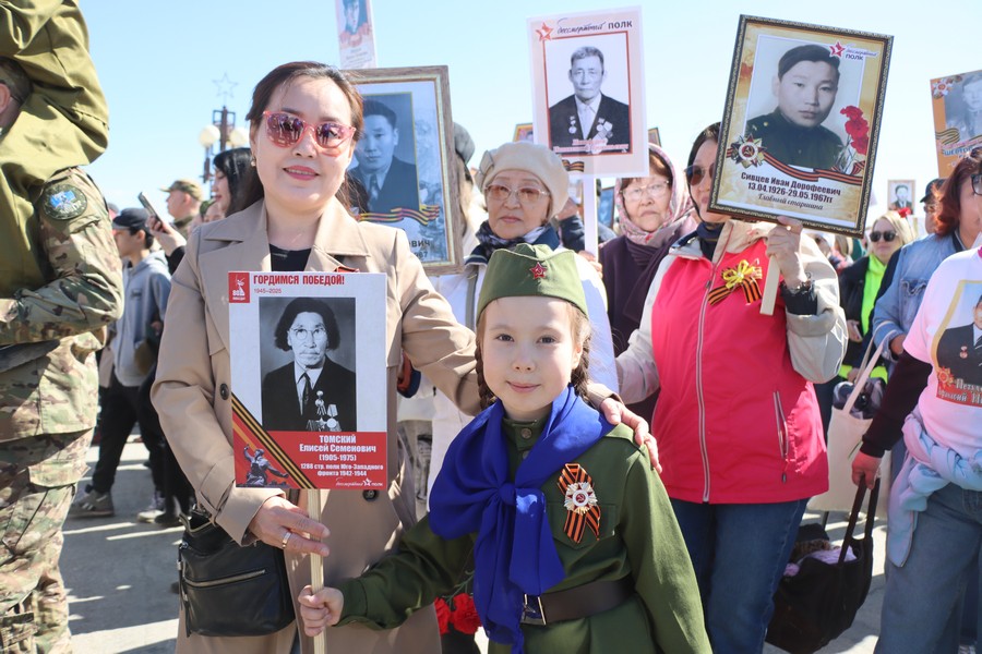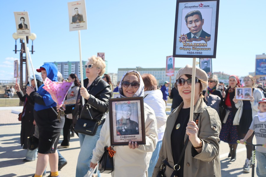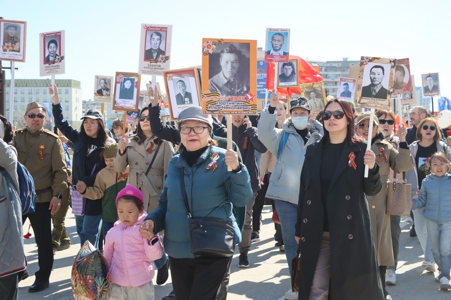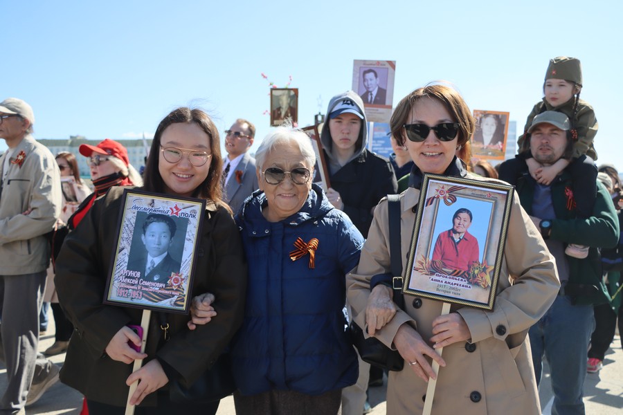 В рамках празднования 80-й годовщины Великой Победы состоялось шествие «Бессмертный полк». Колонны с портретами воинов Великой Отечественной войны 1941-1945 гг. и бойцов специальной военной операции прошлись по улице Хабарова. К шествию присоединился глава Республики Айсен Николаев.