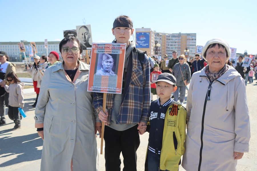 «Бессмертный полк» объединил сегодня не только взрослых. В одном ряду с родителями — сотни юных якутян, которые бережно несли в руках портреты прадедов, воевавших на фронтах Великой Отечественной войны.