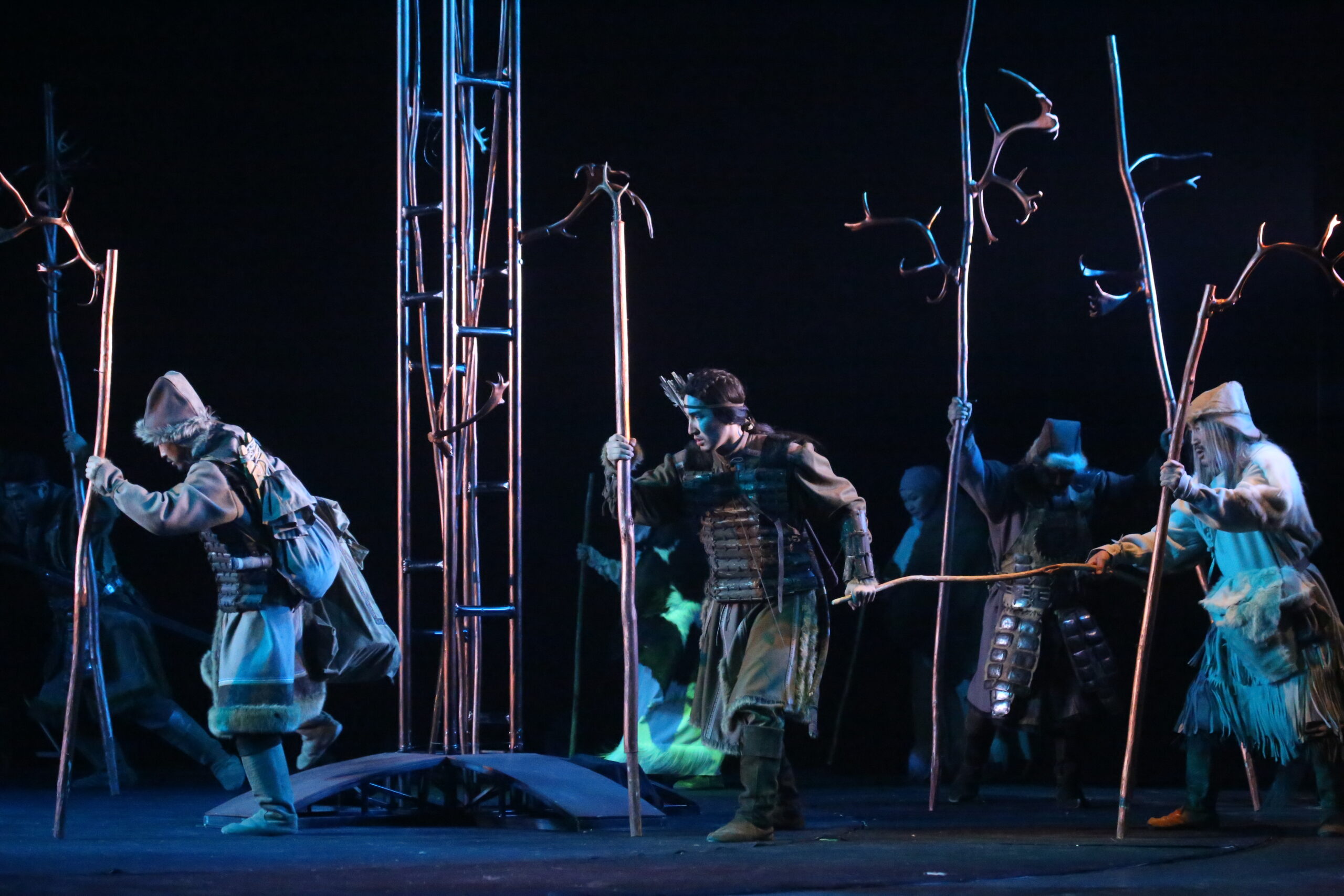 Трагедия и героика, ярко выраженное противостояние представителей различных племен со своим образом жизни и культуры, картины быта и войны, жестокость эпохи кыргыс и милосердие простых людей, любовь и ненависть, страсть и целомудрие, зарождение новой жизни и слом старого, бескорыстное служение, верность своему народу и стремление к наживе, дружба и понимание необходимости мира – мы, зрители, дружно переживали все этои чувства вместе с актерами. Степенность и медлительность саха в сочетании с природной грацией и пластикой туматов и дьирикинэй, точеные фигуры актеров с оружием в руках или выполняющих повседневную работу, радующихся или горюющих, взметнувшийся ввысь ствол дерева (возможно, это символ Аал Луук Мас) и остов ураса – мы словно воочию увидели ожившие скульптуры Манжурьева.